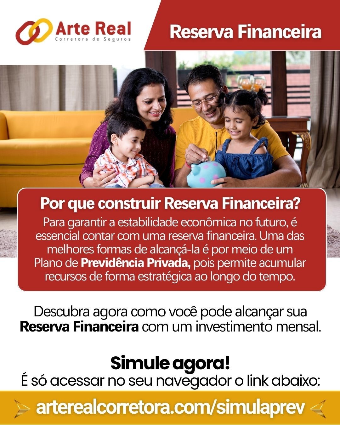 O sistema apresenta o valor estimado da reserva financeira. Ele simula com base na rentabilidade de 9% ao ano (fundo conservador), considerando idade atual, idade desejada para aposentadoria e valor de contribuição.